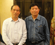 浙江天臺山梅氏宗譜 中國抗癌協會常務理事、河南省抗癌協會會長楊文獻教授和《百花散》傳人梅先生合影